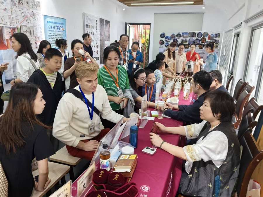 青浦区中医医院打造的“趣味本草”摊位前人气爆棚。游客随机抽取“茯苓+山药”“枸杞+菊花”等药材组合,在中医专家指导下调配养生茶饮。来自俄罗斯的玛莎(Masha)举着自制的“安神助眠”香囊笑道:“我要把这份‘东方秘方’带回家乡,告诉朋友中国乡村的秘密!”